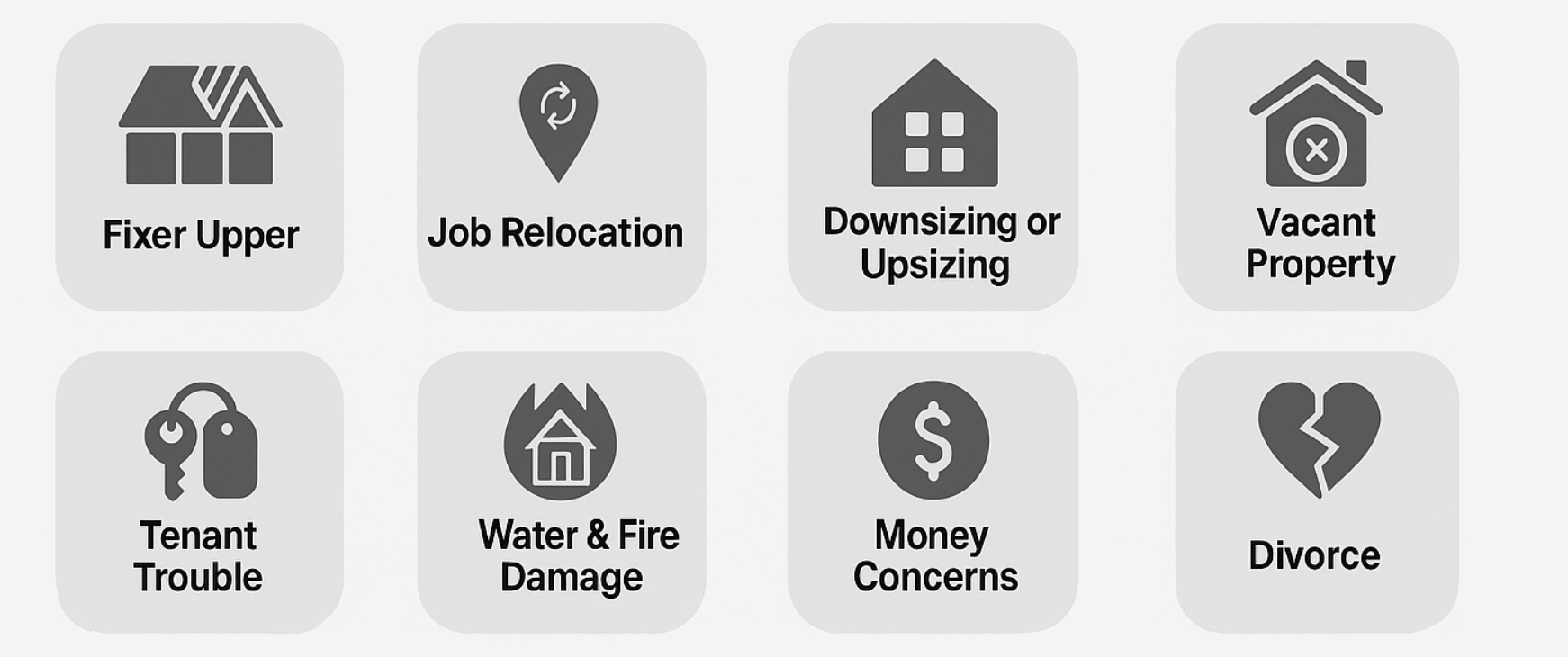 We often help sellers dealing with tough situations — from job relocations and divorce to financial hardship or inherited homes.